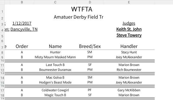 Starts Friday at 8AM with the Shooting Dog followed by the All Age and Derby.