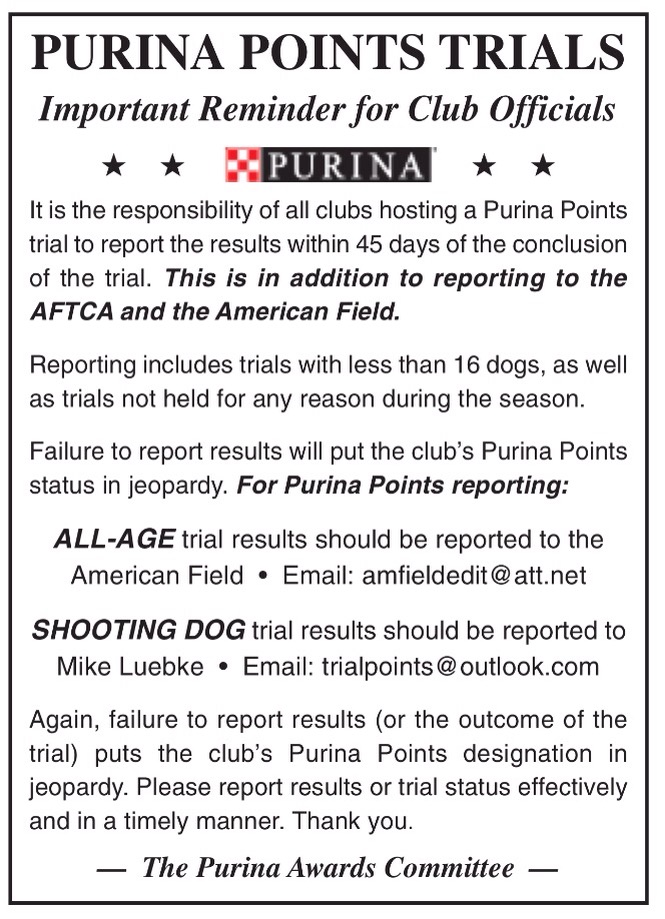 Shooting Dog points need to be submitted to Mike Luebke at trialpoints@outlook.com