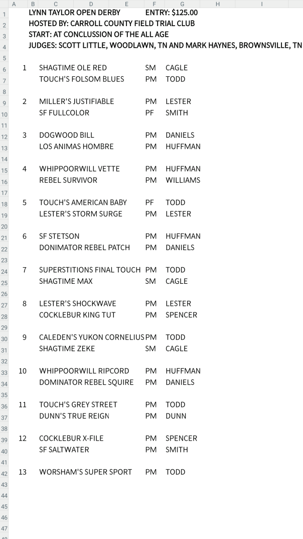 The Carroll County Open All-Age will start Sunday, February 24 at 8 am. The derby will start immediately after the All-Age.