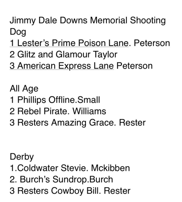 Jimmy Dale Downs Memorial Shooting Dog stake winners are pictured