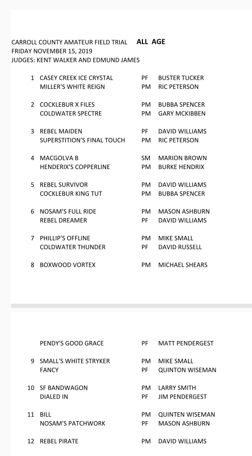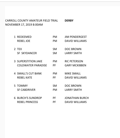 The trial begins Thursday morning, Nov. 14th, with the Shooting Dog stake.