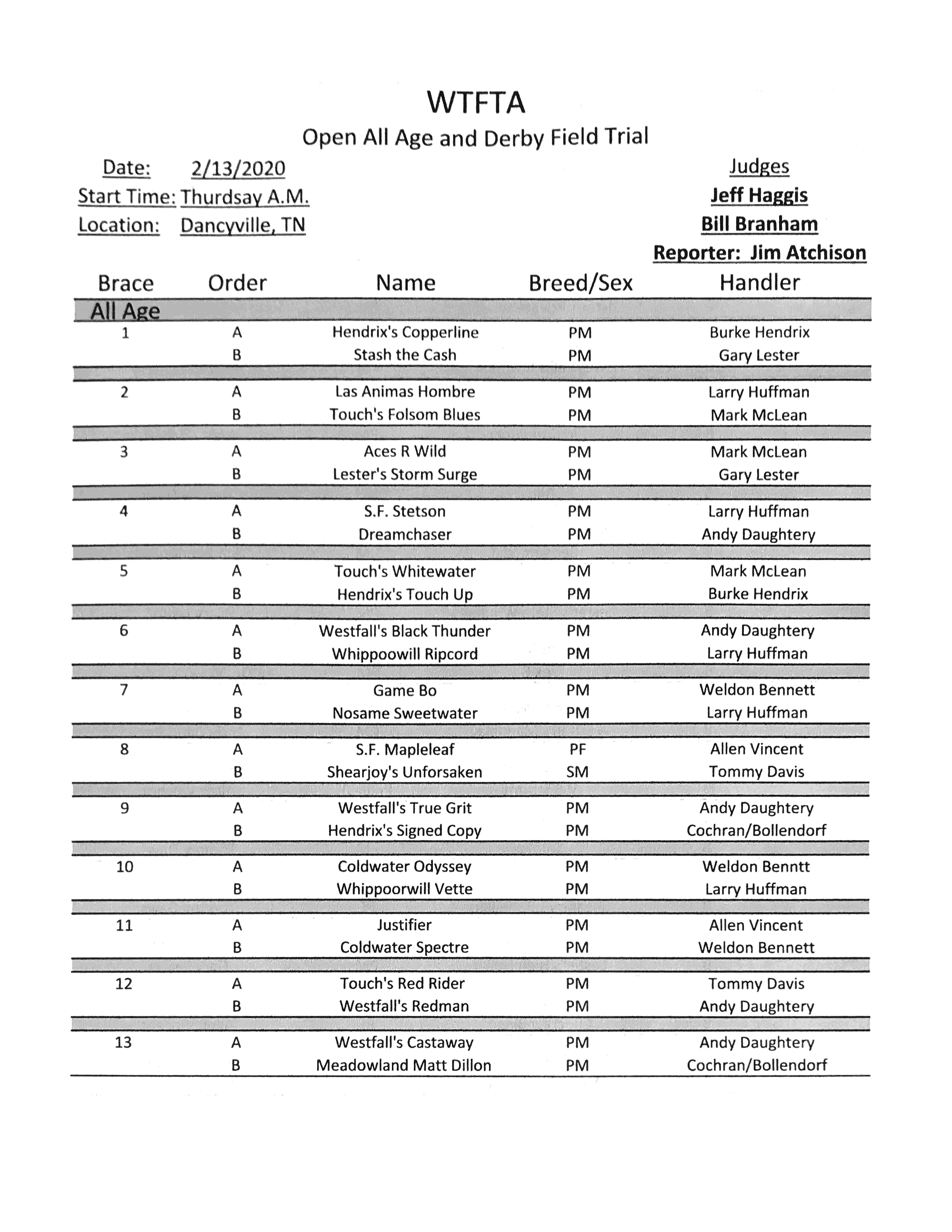 • Sportsman’s Pride Sponsorship for several Region 6 Amateur Field Trials