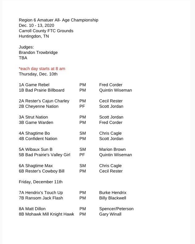Please find attached to this email a copy of the running order for the Region 6 Amateur All- Age Championship.