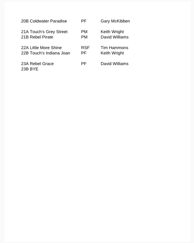 We were contacted this afternoon that Mr. Donnie Duckworth will not be able to judge due to a health issue. We are working diligently to find his replacement and will have this secured by tomorrow afternoon, if not sooner.