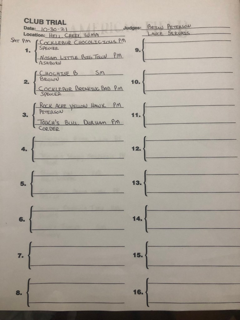 Please see the attached running order for the Hell Creek FTC amatuer trial that will begin this Friday at 8 am with the Amateur All-Age stake.