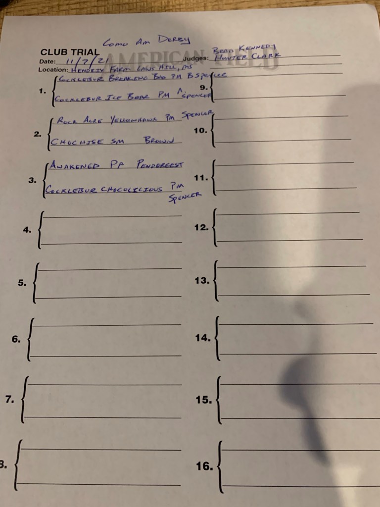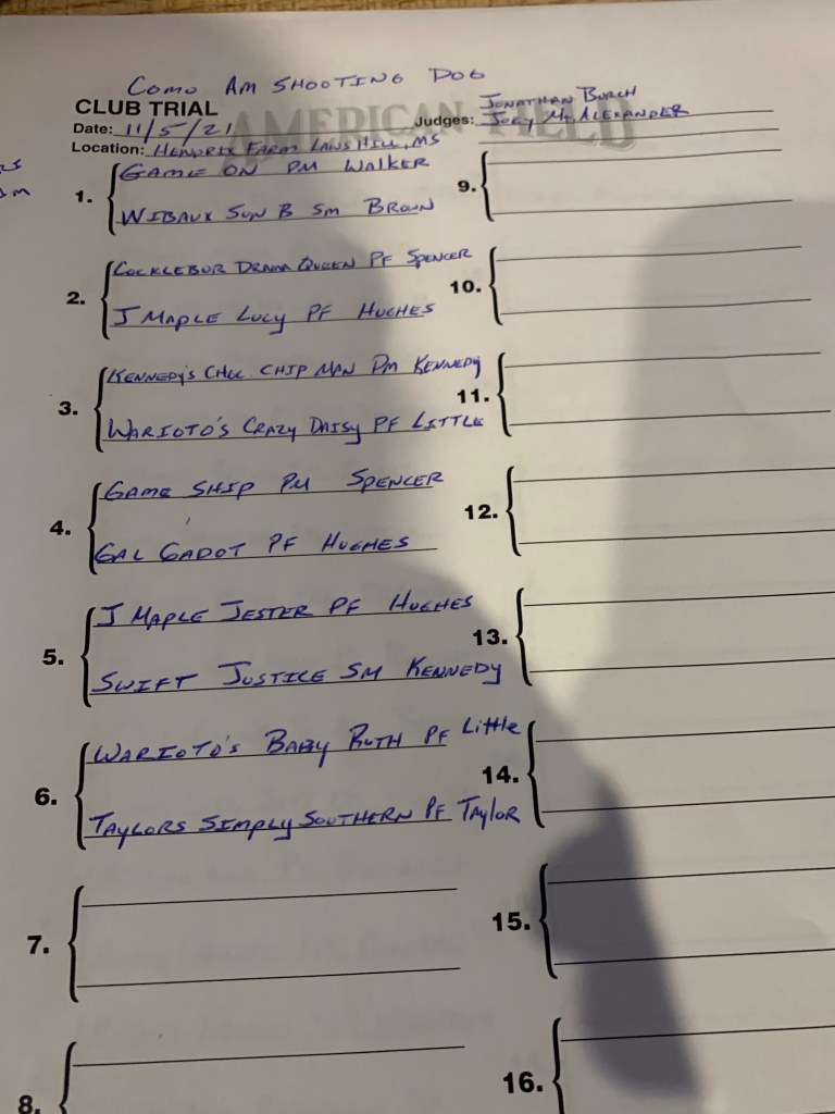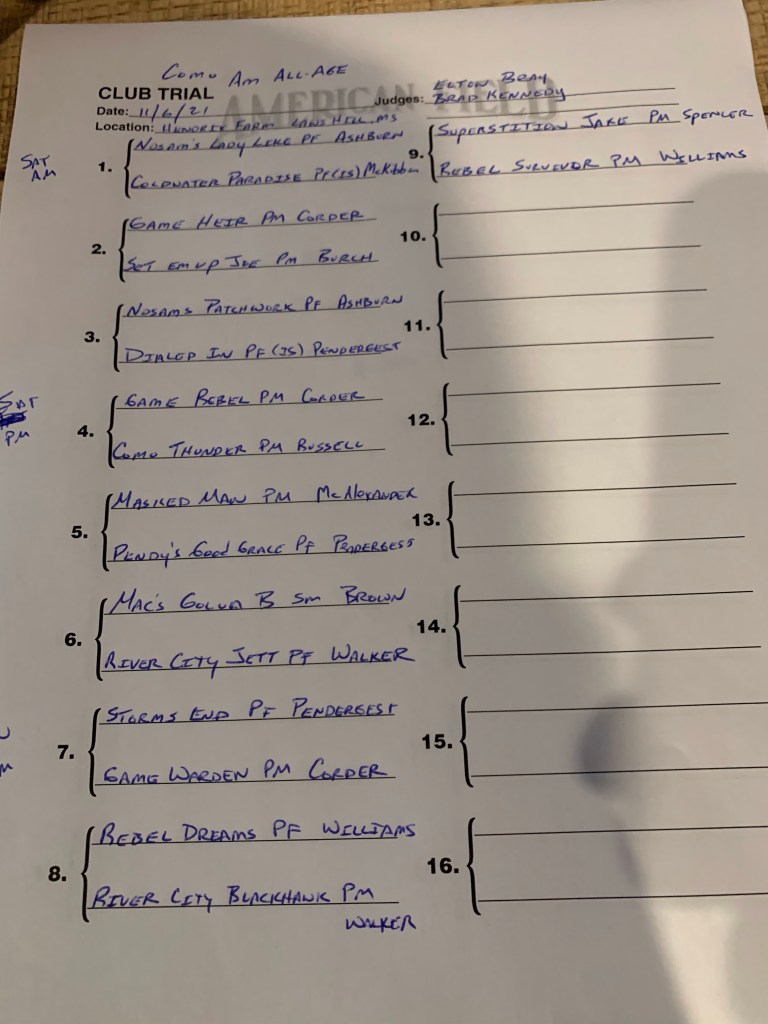 Como FTC Amateur Trial running order. Shooting Dog stake will begin on Friday morning at 8:00 am, followed by the All-Age stake, then the Derby stake. Best of luck to all the contenders!