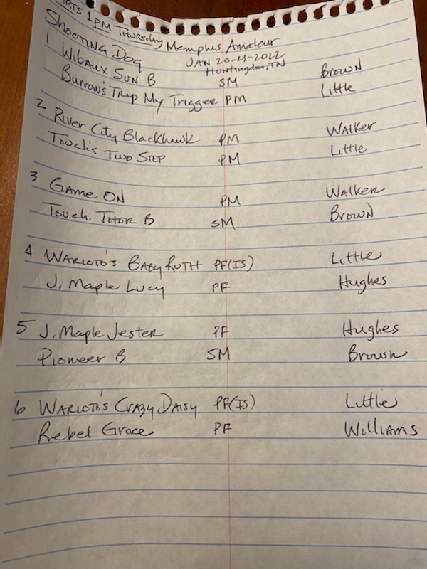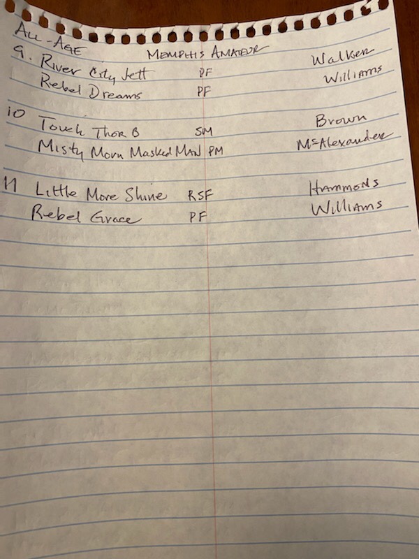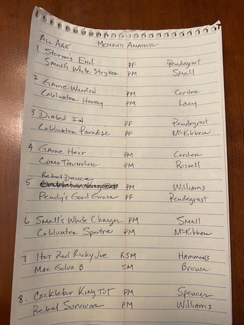 The Memphis Amatuer Trial begins at 1 pm on Thursday in Huntingdon, TN. The trial will begin with SD followed by Derby and AA. Best of Luck to all the contestants!