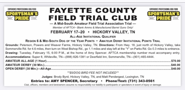 The drawing for the Fayette County FTC trial will be at 6 pm on Tuesday, February 15th. Contact Amy Spencer with your entries.