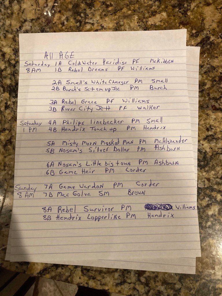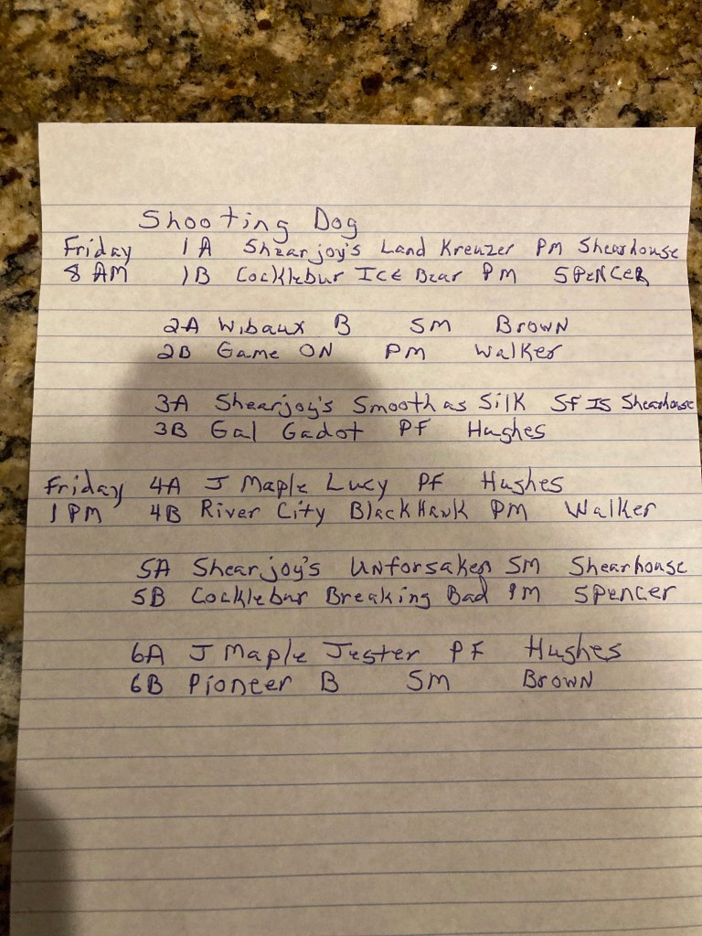 Running order for the Marshall Co. FTC amateur trial is pictured below. The trial begins on Friday with the Shooting dog stake followed by the All-Age, then Derby. We wish all contenders the best of luck! We would like to thank Sportsman’s Pride for their sponsorship. #SportsmansPride #aftca #ukcdogs #dogsthatdomore #region6aftca #fieldtrials #birddog