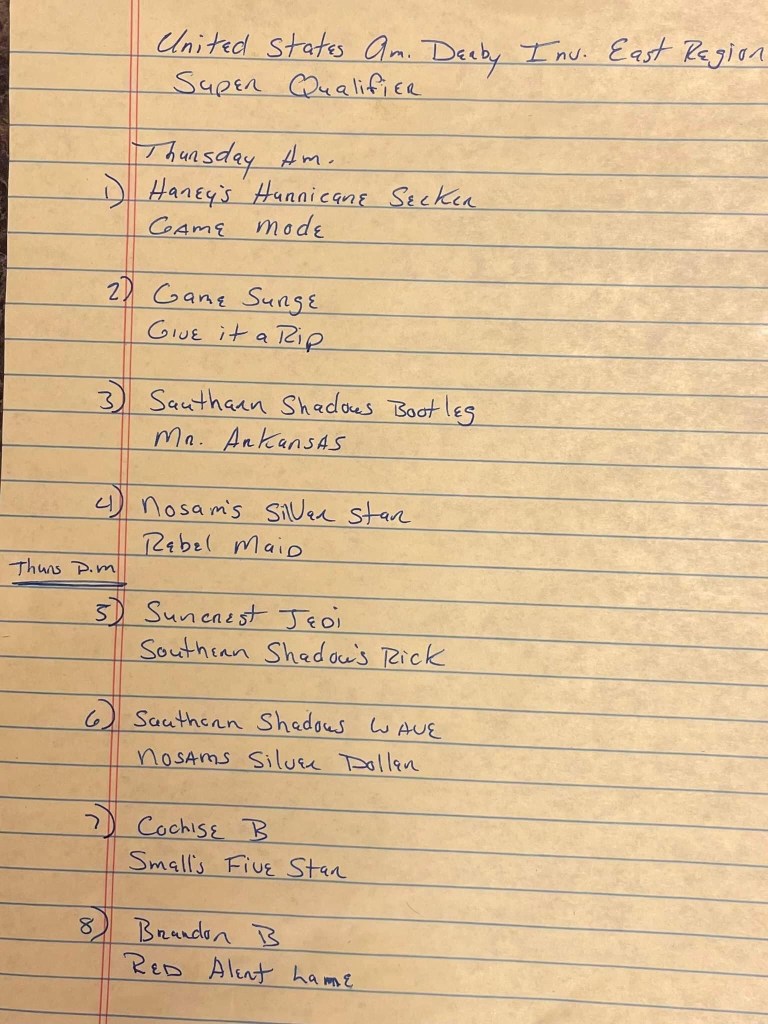Running order for the East Region Super Qualifier. Trial begins on Thursday morning in Huntingdon, TN at the Carroll Co. FTC grounds. Wishing each competitor the best of luck!! #region6aftca #aftca #fieldtrial #birddog #ukcdogs #DogsThatDoMore