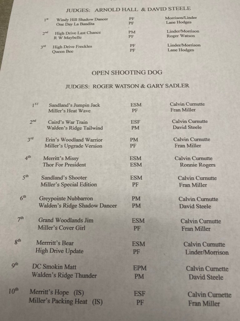 Congrats to the winners of the Marshall Co. FTC Amateur Field Trial