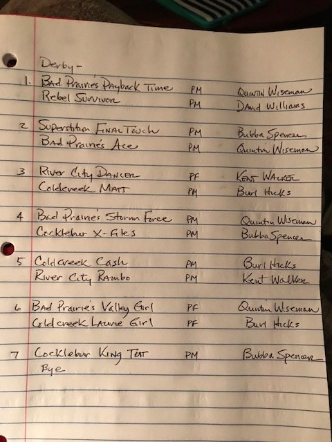 The Wolf River Amateur will start Thursday at 8 am with the All-Age. The Shooting Dog will run 1 brace on Friday pm and finish on Saturday. The Derby will start Sunday at 8am.